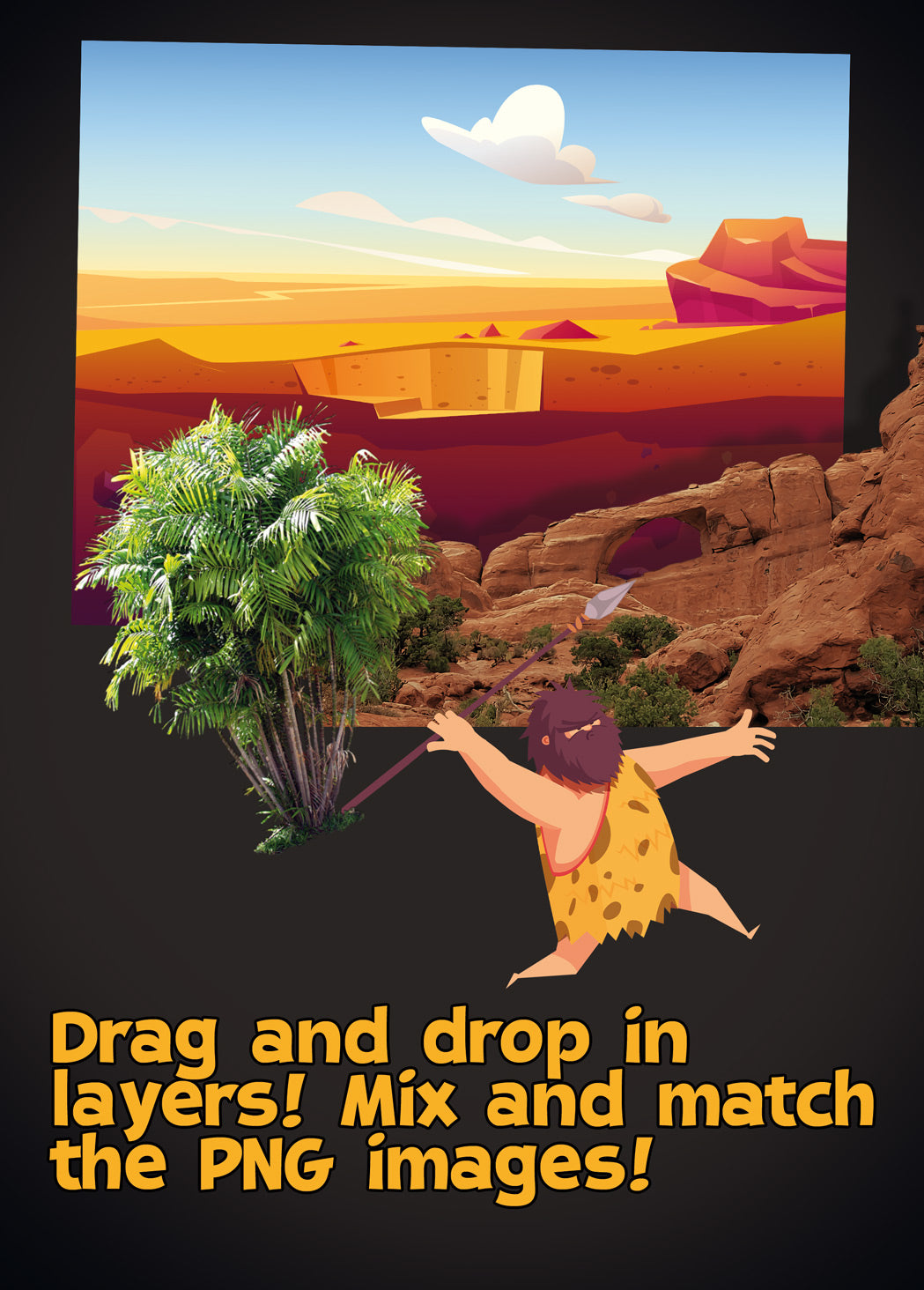 - Scale, rotate, and customize PNG layers to fit your desired scene
