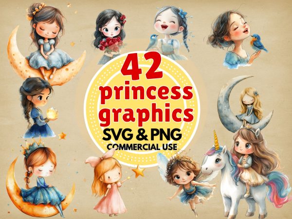 This fairy tale-inspired collection is designed with love to help you create beautiful, professional-quality designs effortlessly. Whether you need princess graphics for a birthday project or enchanting artwork for a business product, this bundle has you covered! πΈβ¨