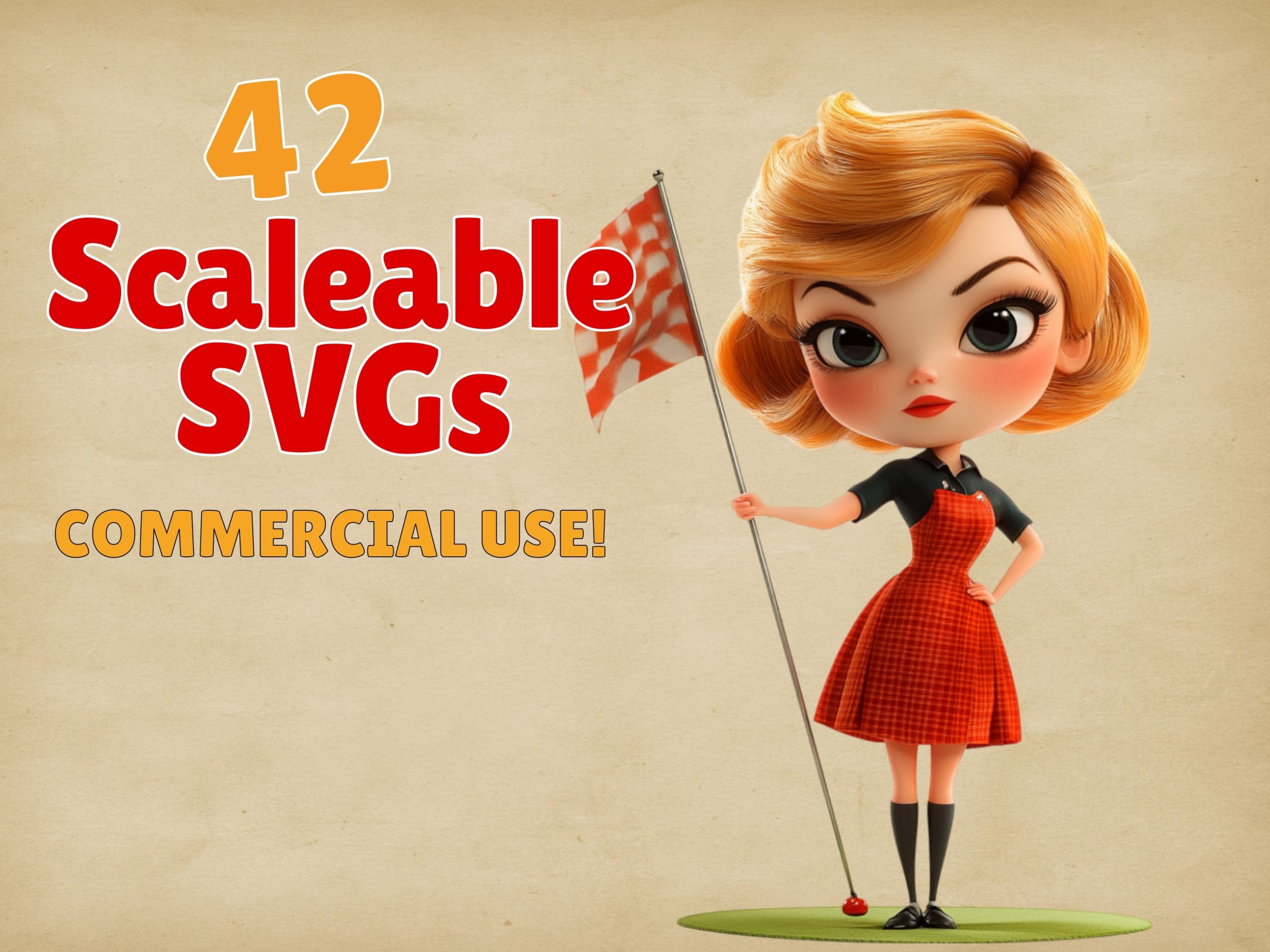 Perfect for sublimation, crafts, and vintage-themed designs, this Retro Woman Golfing Clipart set features a stylish female golfer in a classic pose. Ideal for digital projects, printable art, t-shirt designs, and more! 🎨⛳