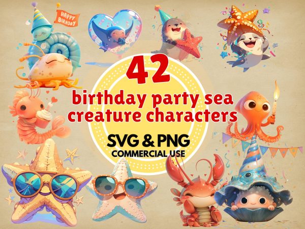These delightful under-the-sea-themed characters, featuring charming fish, playful dolphins, cheerful octopuses, and more, add a fun and festive touch to any birthday celebration design. Whether you're a crafter, small business owner, teacher, or designer, these whimsical sea creatures will bring your projects to life with vibrant colors and playful details.